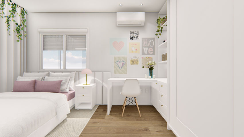 Nestes ambientes de dormitório, o objetivo foi criar espaços aconchegantes, elegantes e contemporâneos, seguindo as preferências e personalidade dos usuários.